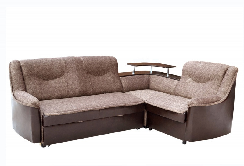 Угловой диван с системой трансформации "венеция" предназначен для ежедневного использования. Наполнитель дивана пенополиуретановым(ППУ). Иметься угловая полка из ЛДСП. Угол является взаимозаменяемым (можно переставлять как правосторонний так и левосторонний). Скрытая под сиденьем в основании дивана выкатной механизм для преобразования в положение "кровать" выдвигается и вытягивается вверх за потайной ремешок, получается удобное и высокое спальное место. Имеется бельевой ящик в кресле.