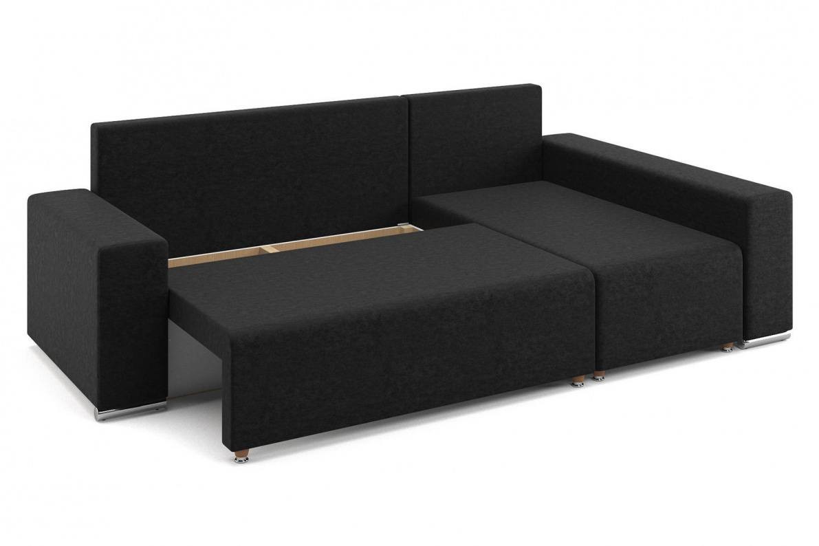 • Бюджетный вариант углового дивана с подлокотниками. Оснащен надежным кроватным механизмом еврокнижка. Под сидением расположен бельевой ящик.